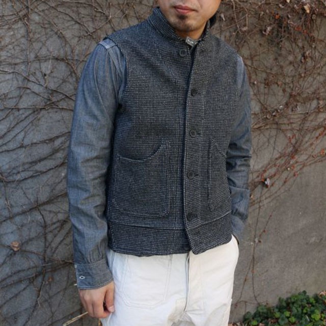 秋冬を意識し、ウールナイロン素材で制作したベスト。