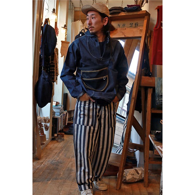 また、インディゴ染めの生地ですので、着用することに少しずつ退色していくのが特徴です。