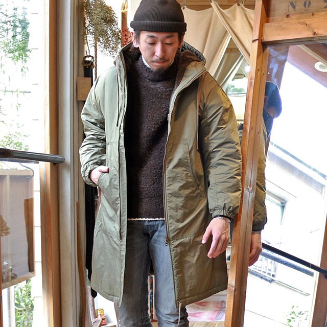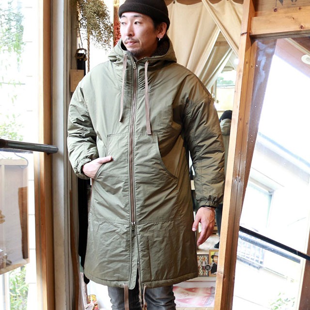 スポーティなベンチコートと米軍のカタパルト・オフィサースモックのイメージを融合させて再構築したアイテム。
