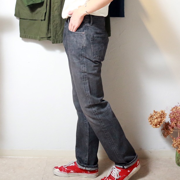 スッキリとしたテーパードシルエット、少し深めの股上など、昔ながらのシルエットを忠実に再現しているのもポイント。