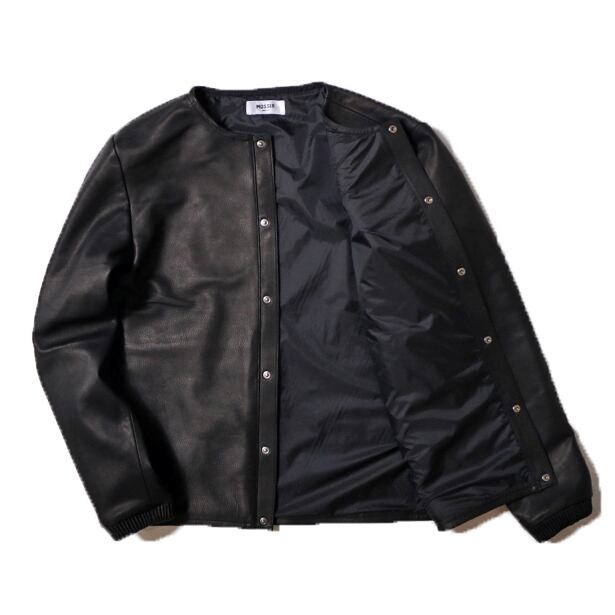ノーカラータイプで、フロントスナップボタンで着脱できる一着です。