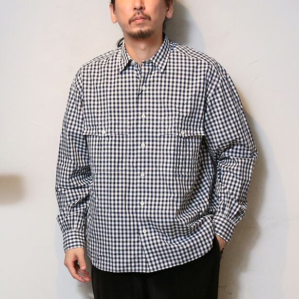 Porter Classic ROLL UP GINGHAM CHECK SHIRT ポータークラシック ロールアップ ギンガムチェック シャツ (NAVY) [PC-016-3355]