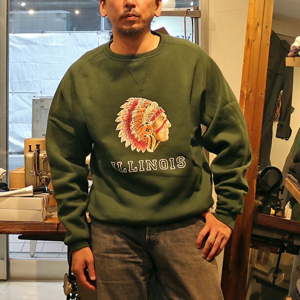 JELADO ILLINOIS Flocky Pt Sweat ジェラード イリノイ フロッキー プリント スウェット(Black)(Grass Green)[AB12201]