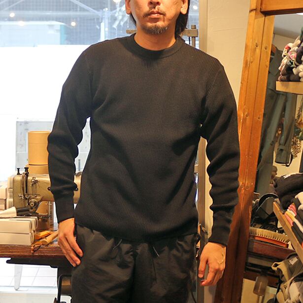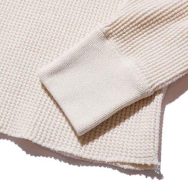 一般的なヘビーサーマルに使用される30番手糸を超える10番手糸を採用し、大きくはっきりとしたワッフルの凹凸が特徴。
