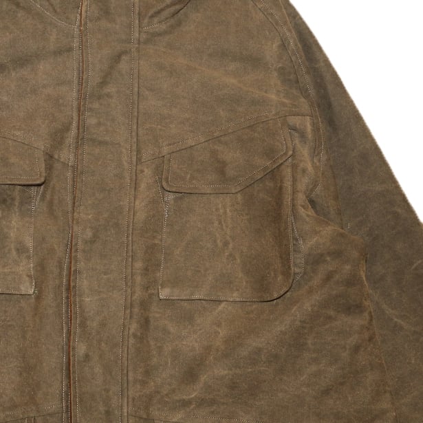 まるでオイルコーティングジャケットを長年着込んだような、リアルなヴィンテージ感を表現しています。