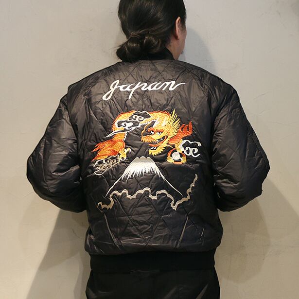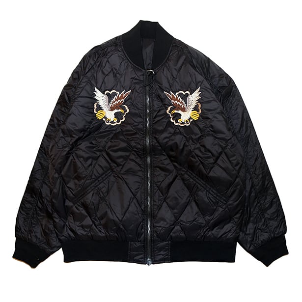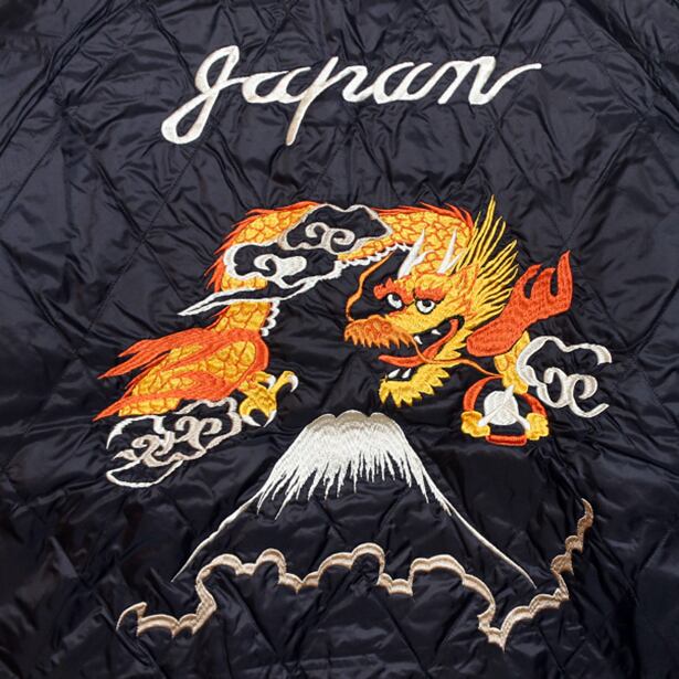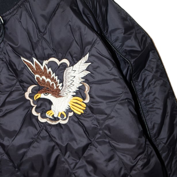 表側は、ダイヤキルトで左右胸に鷲と後ろには龍のスカジャン刺繍を。