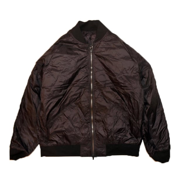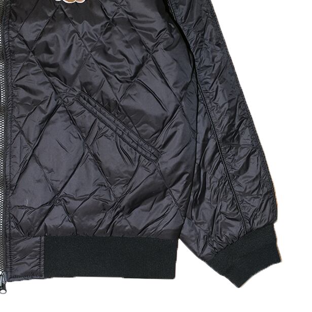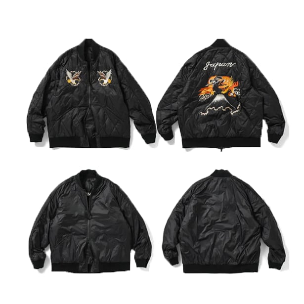 スカジャンとダウンを組み合わせた、スカジャン風リバーシブルダウンジャケット。