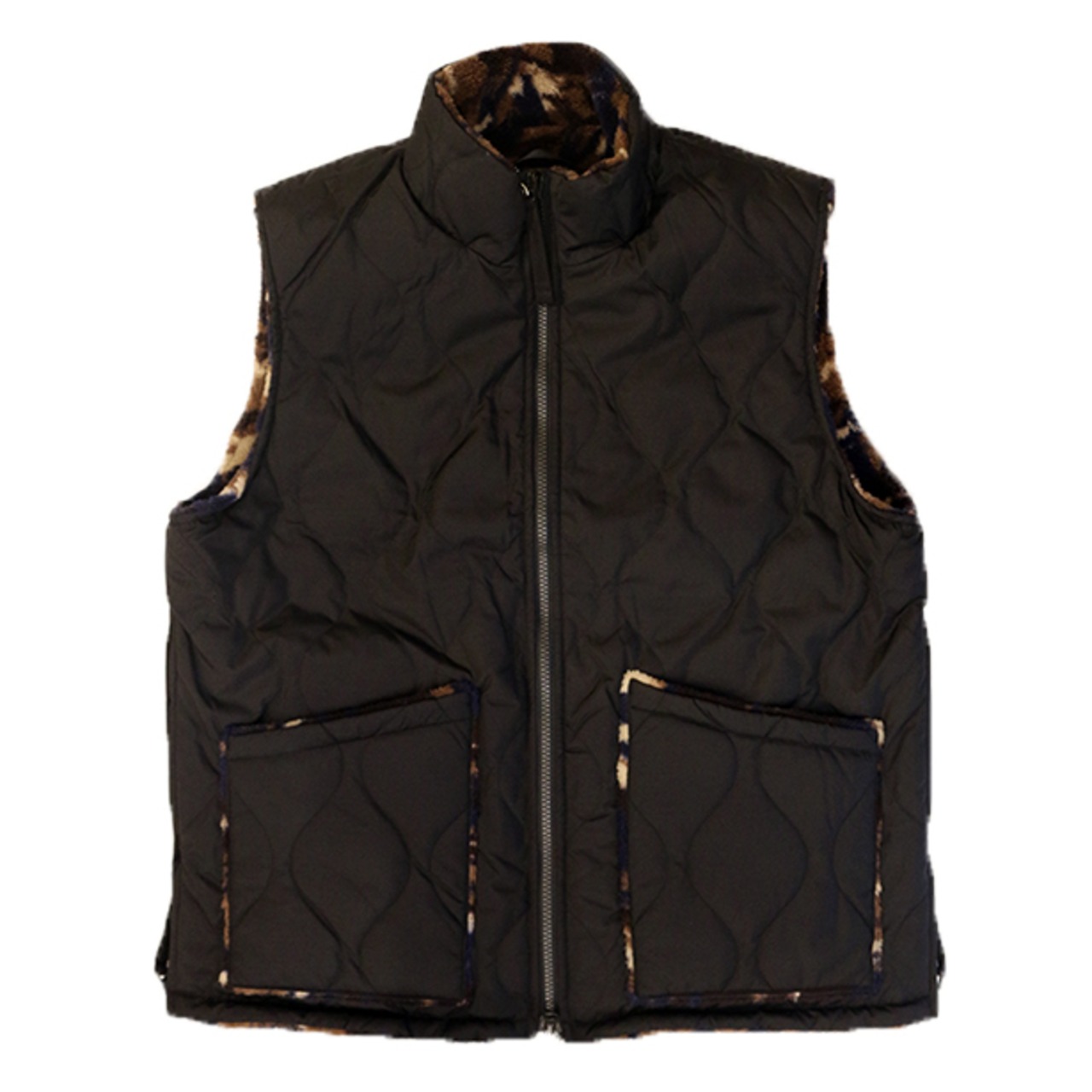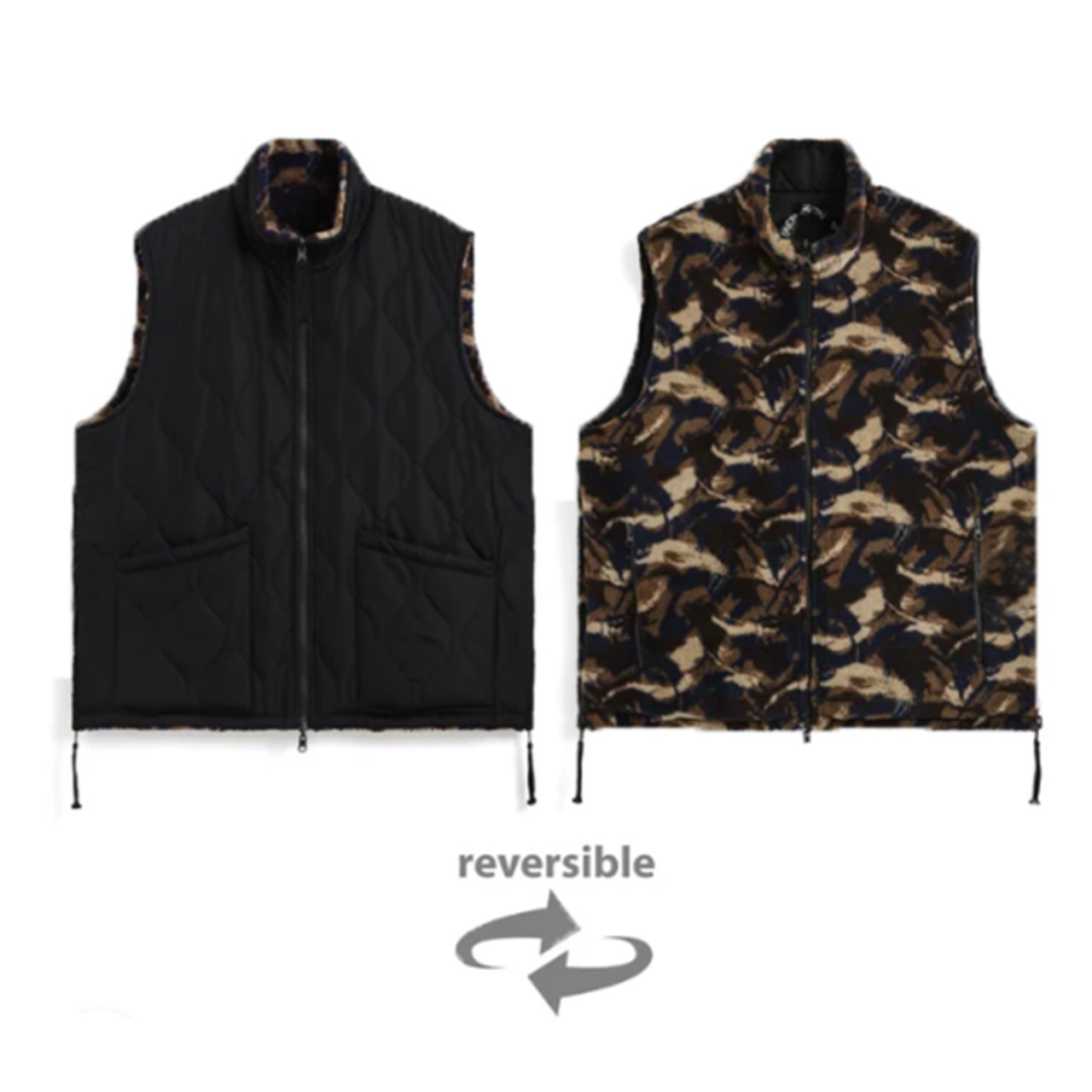 2つの表情が楽しめるリバーシブル仕様のミリタリー"ダウン×ボア"ベスト。