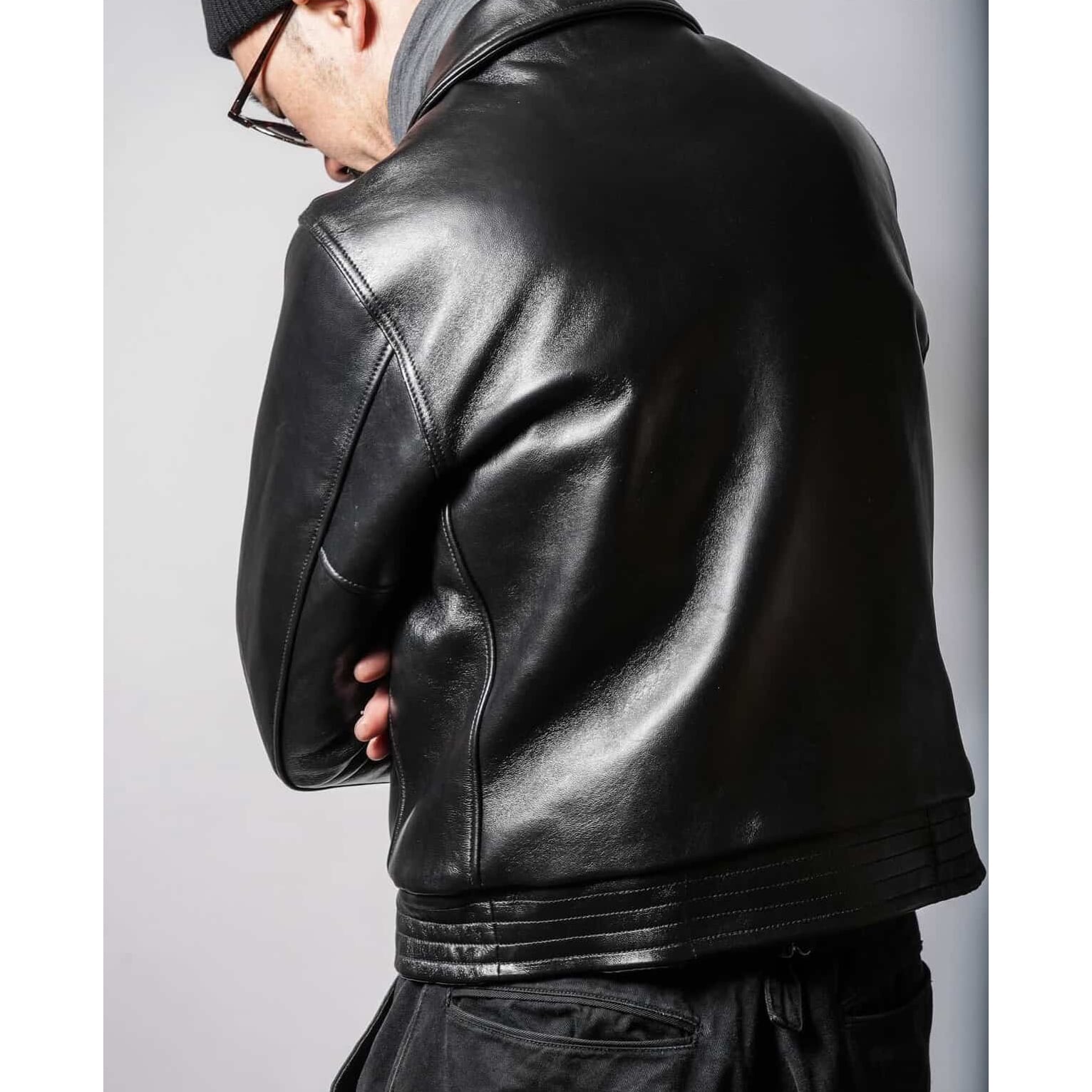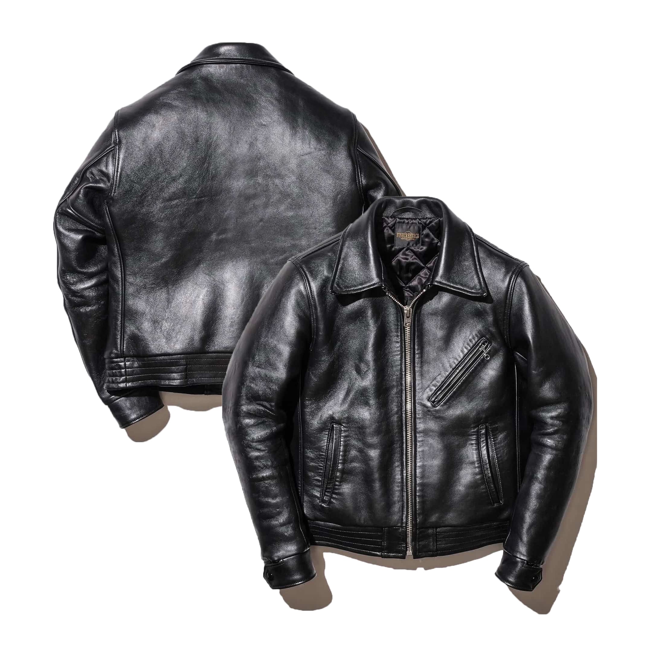 1950年代の**Schott**“リボンタグ”期のシングルライダースをベースに、当時の無骨な佇まいを踏襲しながら現代的なフィットへと再構築した一着。