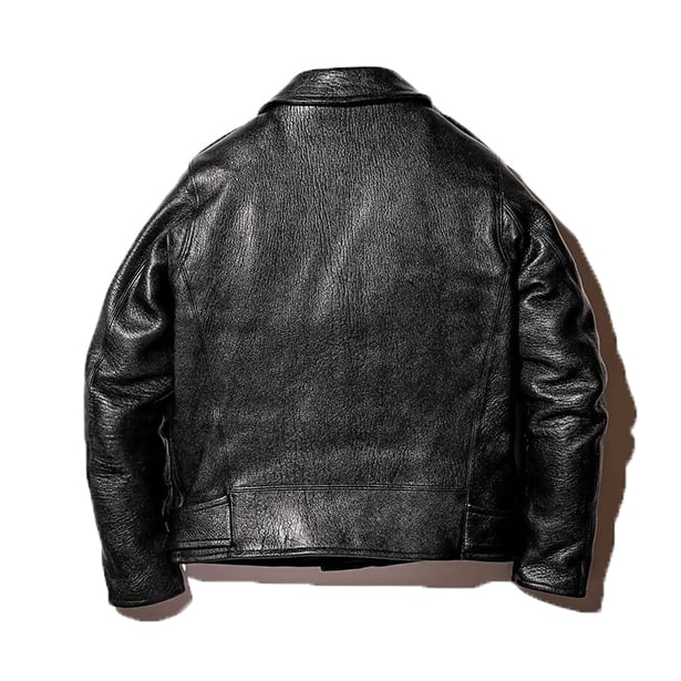 ジッパーをはじめとする各種パーツやディテールにも徹底的にこだわり、ヘビーウエイトながらもゴートスキン特有のしなやかさを併せ持つ、着応えのある一着に仕上げました。