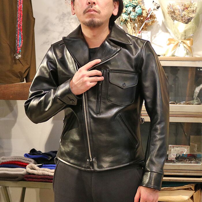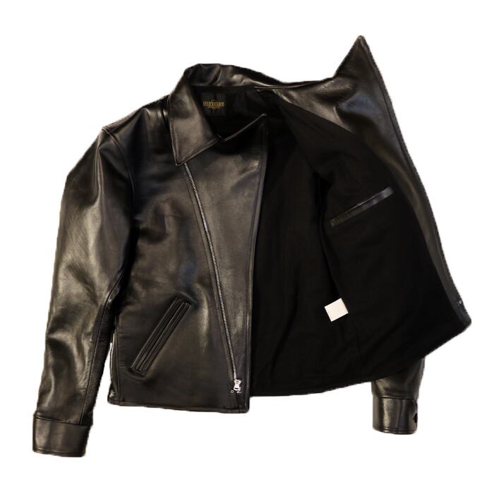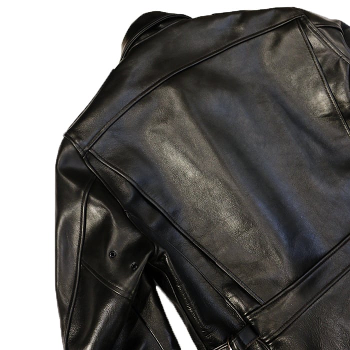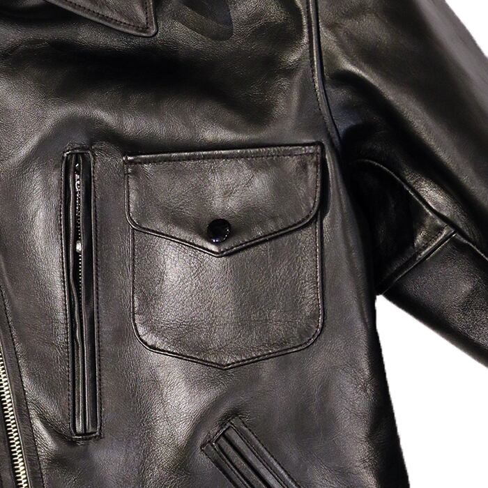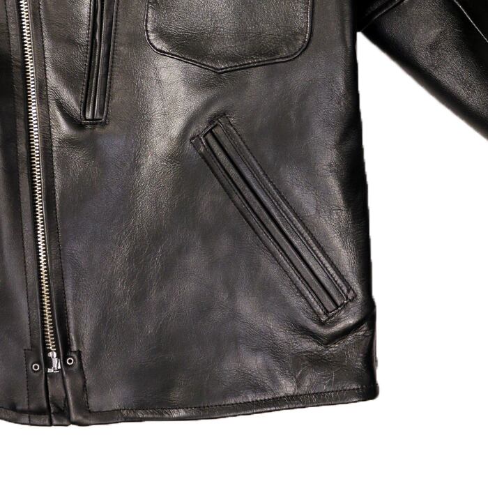 シルエットは肩・胸・袖巾に程よいゆとりを持たせ、往年のアメリカンレザージャケットを彷彿とさせる仕上がりです。