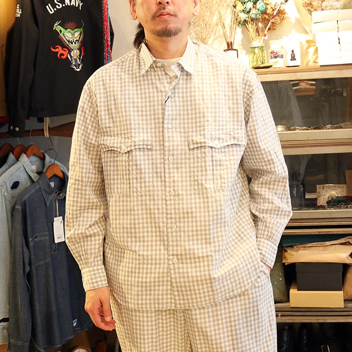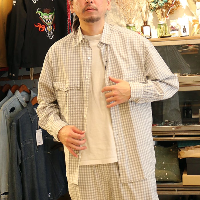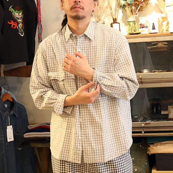 Porter Classic ROLL UP HEATHER GINGHAM CHECK SHIRT ポータークラシック ヘザー ギンガムチェック シャツ(GRAY)[PC-016-3968]