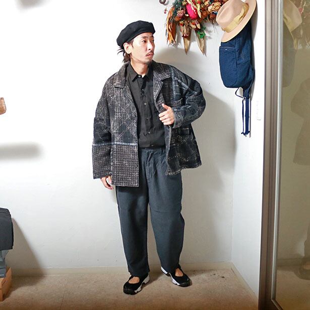 生地には、硫化染めを施したブラック モールスキン生地を使用し製作しています。