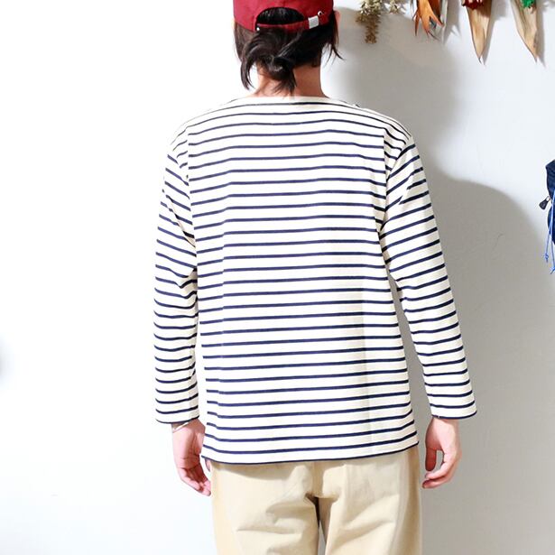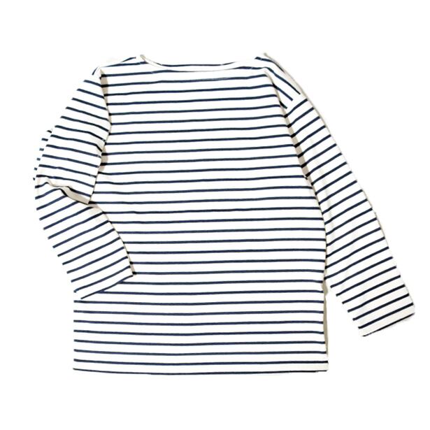 先染めのボーダー生地を使ったベーシックなボーダーカットソー。
