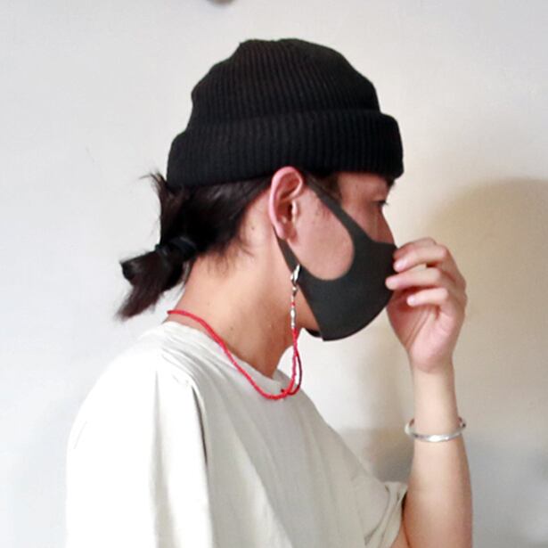 シンプルなデザインで、メガネやサングラス、そしてマスクなどをぶら下げることも可能です。