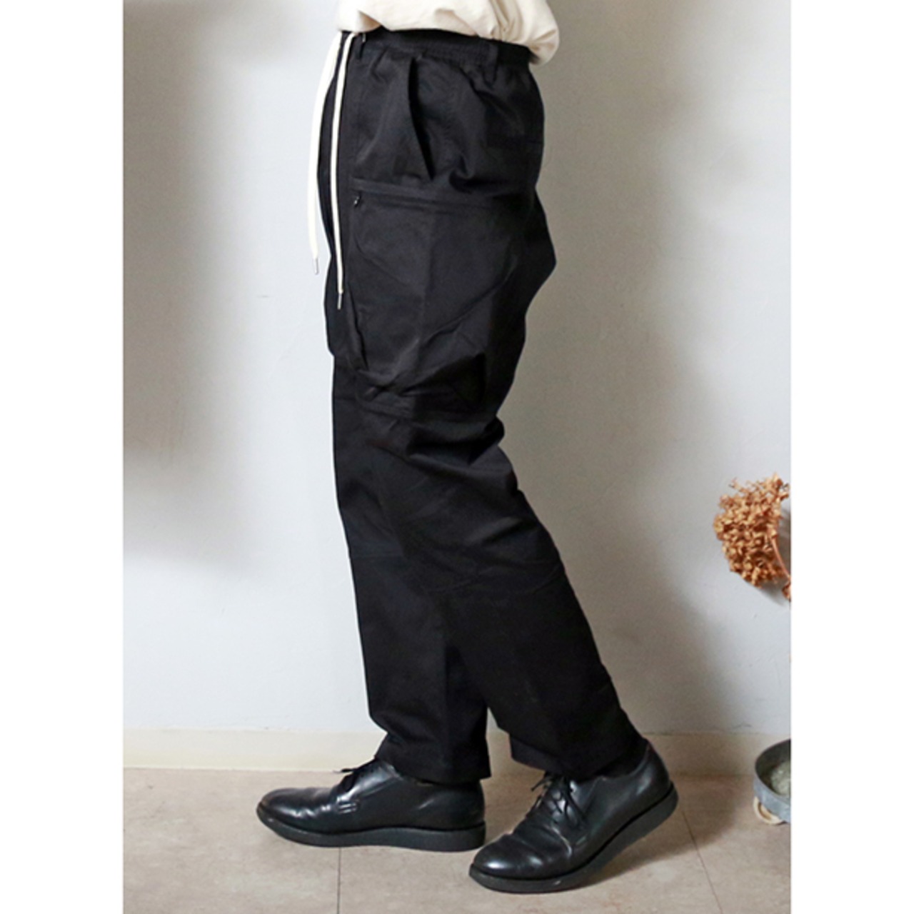 また、ウエストはゴムシャーリングと紐のイージーパンツ仕様となり快適な履き心地を実現します。