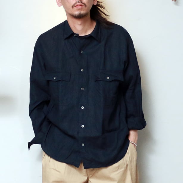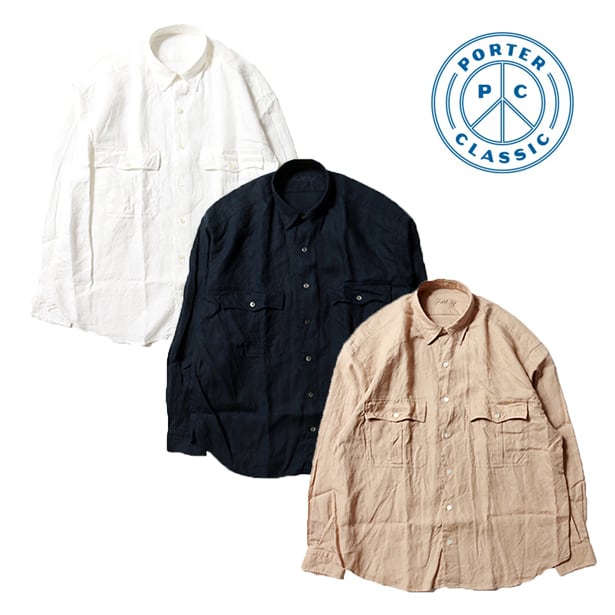 Porter Classic ROLL UP LINEN SHIRT -FRENCH LINEN- ポータークラシック ロールアップ リネン シャツ (WHITE)(ANTIQUE GOLD)(DARK NAVY)[PC-016-1853]