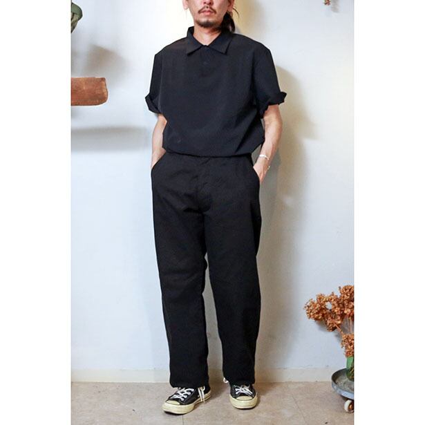 オールドスタイルのワークトラウザーがベースの一本となり、ネップ感あるしっかりと厚さのある生地で仕上げています。