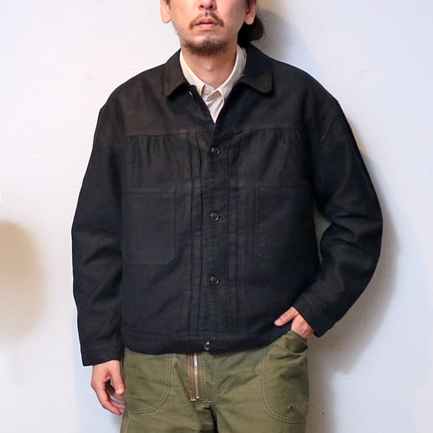 こちらは、当時のモールスキンを再現する為、ネップのあるムラ糸を使って織り上げた生地を起毛しています。